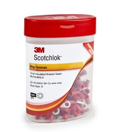 6. Terminal en Forma de Anillo con Aislamiento de Vinilo 3M™ Scotchlok®, MV18-8R/LK, Rojo, 18-22 AWG, Ojo 4.4 mm